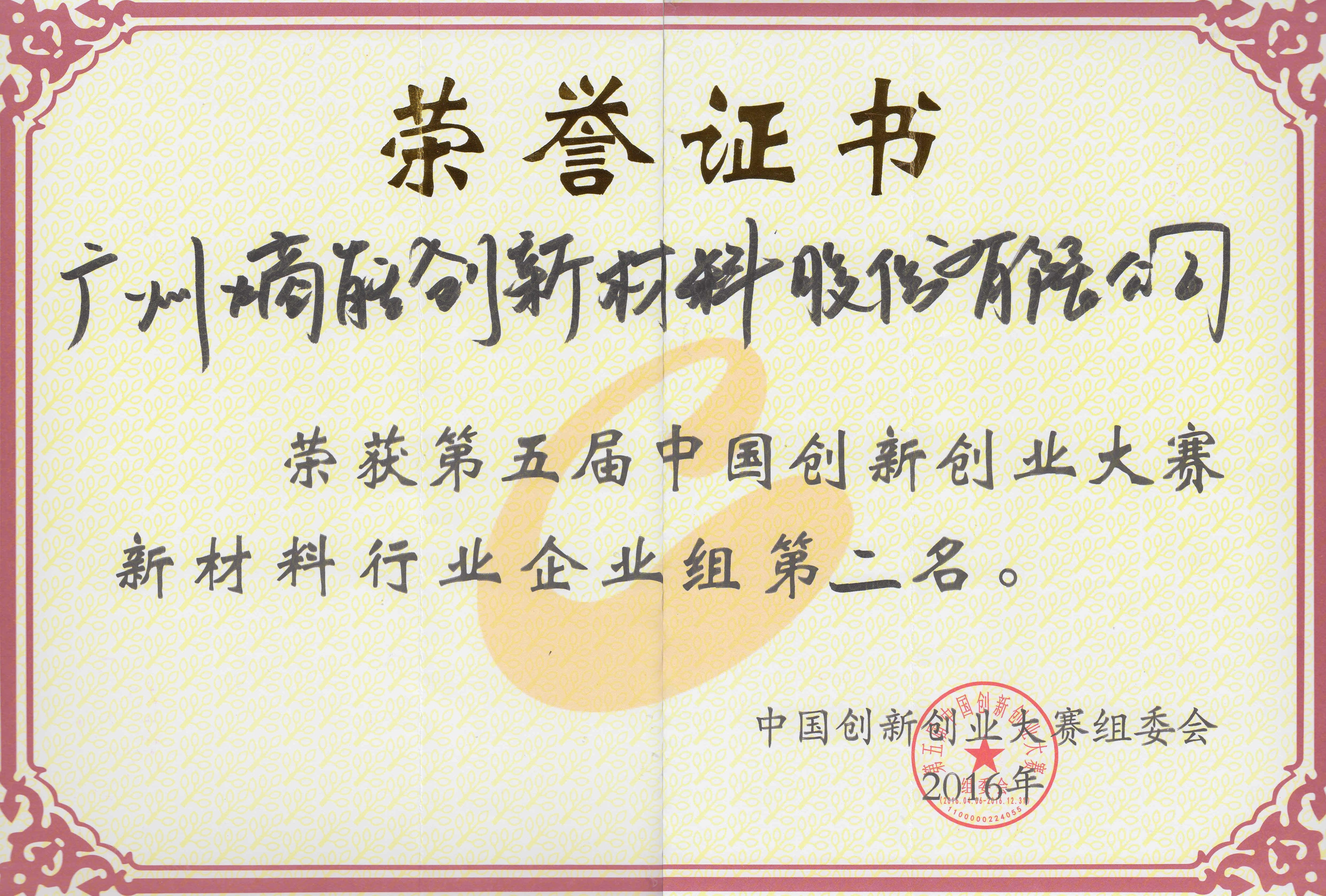 • 中国创新创业大赛第二名